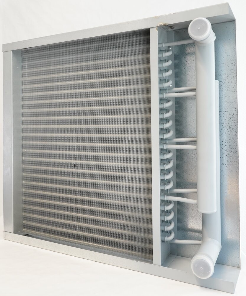 Ein Warmwasserregister ist ein Wärmeübertrager, der in Lüftungs- und Klimaanlagen zur Erwärmung der Zuluft eingesetzt wird. Es besteht in der Regel aus Kupferrohren mit aufgesetzten Aluminiumlamellen, durch die erwärmtes Wasser aus einem Heizkreislauf strömt. Die Wärme wird über die Lamellen effizient auf die durchströmende Luft übertragen. Warmwasserregister eignen sich für den Einsatz in zentralen Lüftungsgeräten, Luftkanälen oder Klimageräten und werden je nach Auslegung mit unterschiedlichen Leistungen, Druckstufen und Anschlusssystemen gefertigt. Sie bieten eine energieeffiziente und regelbare Luftbeheizung, oft in Kombination mit Vor- und Rücklaufregelung sowie Frostschutz.